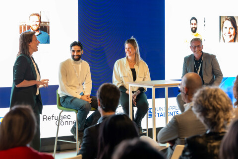 Tijdens de bijeenkomst bij Microsoft Nederland zit staatssecretaris Nobel op de eerste rij. "Er staan 400.000 vacatures open en er leven hier 300.000 nieuwkomers. Het is een no-brainer: die kunnen we gebruiken!"